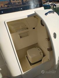 La barca è dotata di un wc privato sotto la consolle , t-top in acciaio , radio bluetooth, presa carica banchina, salpa ancora elettrico, serbatoio benzina 200L, serbatoio acqua 60L, tendalino che copre tutta la poppa , luci led di cortesia interne.