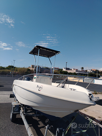 La barca monta anche una doppia batteria da 80 amh, serbatoio benzina di 50 litri, serbatoio acqua dolce di 50 litri con relativa pompa, luci di navigazione, luce 360,stereo e casse boss Bluetooth installate nell'estate 2023, ancora, giubbotti, ciambella razzi tutto il necessario per la navigatore, insieme ad un ecoscandaglio-GPS della lowrance hds 5, portacanne orientabile in acciaio. ho anche i cuscini che non sono presenti in foto che coprono tutta la prua e la poppa della barca.