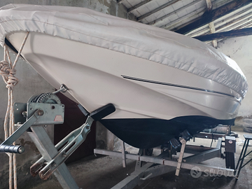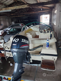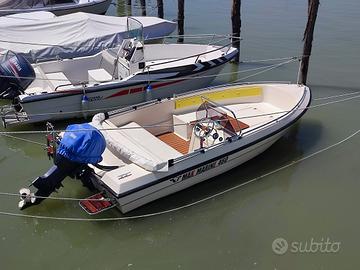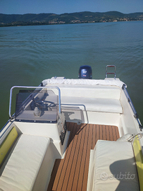 Barca Open MAK Marine 460, con motore Selva 40 CV e trim elettrico Appena tagliandato. Completa di telo, tendalino, presa USB , equipaggiamento, scaletta, spiaggetta e cuscineria. Carrello rimorchio da revisionare ma perfettamente funzionante con bollo sempre pagato. Tenuta in inverno fuori acqua, attualmente possibile prova in quanto ormeggiata nel Lago Trasimeno. Rifatta antivegetativa l'anno scorso, praticamente perfetta pronta all'uso. Barca che plana e raggiunge tranquillamente i 27 nodi di velocità.