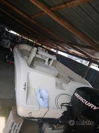 vendo barca modello coverline pescosa con motore Mercury 40/60 efi 4 tempi del 2008 con circa 500 ore fatte tutte a traina principalmente. Barca accessoriata per la pesca ed uscite in famiglia , comoda piena di gavoni e molto spazio in coperta nonostante le dimensioni . Provare per credere ! Cuscineria completa in buono stato, elettronica con 2 batterie e stacca batteria , doccino con acqua dolce , serbatoio carburante in acciaio 100 litri , luci di via , ancora da 6 kg con catena zincata e cima per oltre 100 metri ,2 pompe si sentina , porta canne , eco+ GPS lowrance ti 7 pollici con conda Total Scan 3in1. Tendalino 3 archi in alluminio come nuovo . Non ho il carrello ed attualmente la barca si trova a secco a San Felice Circeo per rimessaggio invernale . La vendo causa neonata( poco tempo a mare) e preso patente nautica quindi vendo solo per trovare da qui a 2 anni nuova imbarcazione più potente . No sognatori ne proposte a ribasso ,altrimenti perdete solo tempo ! Appuntamento da concordare per prova in cantiere o a mare . dati tecnici : lungazza 550 cm larghezza 220 cm pescaggio 0,5m portata max 6 persone potenza max installabile 115 Hp