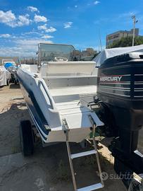 Vendo barca Open 5.30 Angelo Molinari con Mercury 75cv autolube 2 tempi carrello motorizzato trazione posteriore con varicello idraulico telone di copertura visibile a lido Adriano per info contattarmi Felice 3937074074