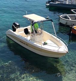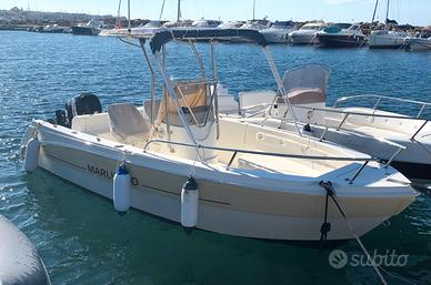 Marlin 20, cantiere Mingolla, fuoribordo Suzuki DF100 hp, Anno 2008, ore moto 300, ottimo stato, elica in acciaio, T-Top in acciaio, Tendalino tessilmar, ulteriore copertura ombreggiante di prua, doppia plancia posteriore (una con scaletta in acciaio), doccia esterna, serbatoio acqua 70 l, serbatoio carburante 100 l, Ecoscandaglio, VHF, fari led pozzetto, impianto doppia batteria con commutatore (batterie nuove 2025), parabordi, scala laterale supplementare, n. 3 porta canne in acciaio, coprimotore, copertura pulpito invernale, bussola, stereo, dotazioni di bordo. Manutenzione annuale regolare. Invernaggio al coperto con telo di copertura in darsena a Gallipoli (LE). Ultimo alaggio ottobre 2025. Prezzo trattabile