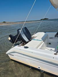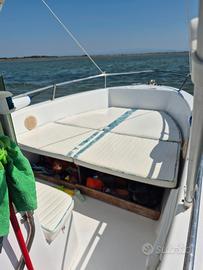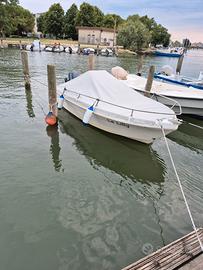 Per passaggio a categoria superiore,vendo barca open+motore,portata 5 persone,tendalino,cuscineria,copertura telo nuovo,la barca e' in acqua visibile a Grado!