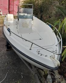 VENDO causa scarso utilizzo, Open 5.90 m., bellissima barca dei Cantieri Lazzari mod. Levriero by Aldo Miggiano perfetta in tutto, autosvuotante, murata alta, molto ampia, comodissima sia per passeggiate in famiglia che per pesca. Motore Mercury 40/60, 4 tempi a consumi ridotti, brillante e puntuale sempre rimessato. Impianto elettrico con cavi in neoprene, pulsantiera con presa 12 V e doppia usb, cuscineria, trim elettrico, tutto del 2023 (estate 2024 la barca non è stata usata). 4 ampi gavoni (poppa, prua, cassero e sedile). Completa di scaletta in acciaio e plancetta di poppa, pompa di sentina, luci di via e luci a led interne, 5 parabordi, dotazioni di bordo entro 12 miglia, 6 giubbotti di salvataggio, tendalino con supporti telescopici, doccetta (con serbatoio in acciaio), ancora artigianale zincata da scoglio, ancora da sabbia Danforth da 10 kg, ancora da sabbia Hall da 2,8 kg, ecoscandaglio Lowrance Hook 7, faro di profondità, supporto per motore ausiliario. Regalo carrello Ellebi non omologato. Disponibili molte altre foto e video da inviare per whatsapp. No perditempo.