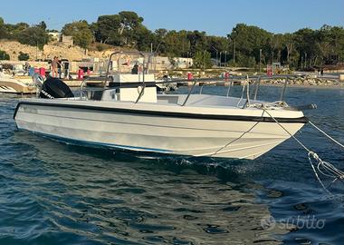 Vendo barca Capo D'Otranto Barca autosvuotante costruita sull'opera viva del Cigala&Bertinetti Surfer lunga 6.30m larga 2.20m Carena molto veloce e morbida sull'onda equipaggiata con motore fuoribordo Mercury Optimax 150cv con 140ore con Idroguida Possibile prova in mare 7500 € Solo barca + Idroguida 4000€ Solo motore XL Mercury 0ptimax 150 cv L 3500 € NON TRATTABILE