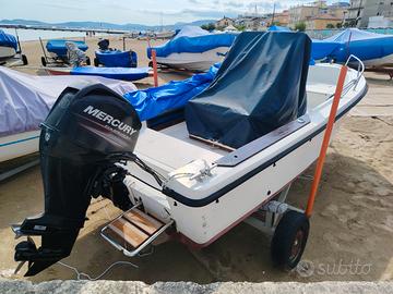 Vendo barca open completa di tendalino, dotazioni di bordo, doccia, pompa di sentina, telo copribarca nuovo, cappottina copri consolle nuova, batteria principale nuova + ausiliaria, cuscinerie nuove, carena perfetta, motore Mercury 40hp con 281 ore di navigazione