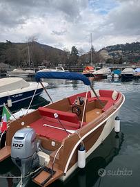 Vendo barca Manara 585 con motore Honda 100 cv ,barca e motore anno 2024 Ore 300 , linea accattivante e prua a piombo , tendalino in acciaio, doccia ,luci pozzetto ,scaletta bagno e telo copri barca .possibilità posto barca,visibile a Como ,euro 24Mila trattabile