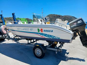 Vendo imbarcazione Sessa Key Largo 16 , con motore fuori bordo 2 tempi e carrello omologato, barca e motore sono in perfette condizioni.