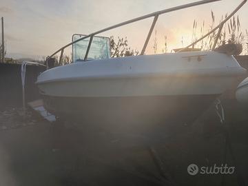 Vendo barca open 550 Saver in buone condizioni, motore Honda 40 cavalli anno 2013 tagliandato ogni anno, tendalino nuovo, cuscineria in buone condizioni, posso inviare foto. Vendo per passaggio ad imbarcazione più grande. Prezzo 5.000 euro leggermente trattabili.