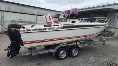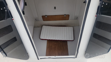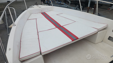 Barca SALPA open 8 posti con locale spogliatoio ad altezza d' uomo in cui poter inserire wc chimico o nautico, ampio prendisole a prua con cuscineria, impianto doccia, scaletta, doppia motorizzazione 2 da 90 hp cad. Mercury 2 t. Con CARRELLO