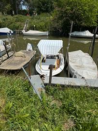 Vendo o scambio Molinari di 4 metri, scafo catamarano ottimo per la laguna o fiume o per pescare. Antivegetativa fatta a settembre,bottazzo nuovo, batteria nuova. No luci. Tiemo copri barca. 2 ancore. Motore evinrude 737 25/50 revisionato da me ogni anno (ho video e foto) girante nuova, guarnizioni e getti nuovi. Olio piede nuovo elica nuova.Barca inaffondabile e motore che va sempre. Specchio di poppa nuovo,power lift manuale. botazzo nuovo, volante e cavo ultraflex nuovi. Possibilità di provare la barca a Mestre previo appuntamento. No perditempo perché comunque per provarla bisogna organizzarsi e perdere un paio d'ore. Per altre info scrivetemi. Eventualmente scambio con moto tipo Honda shadow o simili oppure con vespa o ciao o altra barca