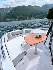 Dati principali Cantiere: Orizzonti Modello: Syros 190 Anno costruzione: 2024 Lunghezza: 5,70 m Larghezza: 2,18 m Motorizzazione: Mercury F 40/60 PRO Anno costruzione: 2024 Ore motore: 114 Portata persone: 7 Barca in perfette condizioni, utilizzata solo in acqua dolce. Tagliandi motore regolarmente eseguiti da centro assistenza Mercury (fatture disponibili e motore appena tagliandato quindi barca pronta per la stagione 2026). Cuscineria originale completa con prolunghe di poppa e prua. Dotazioni di bordo, batteria con staccabatterie, GPS/ecoscandaglio Garmin, Pompa elettrica di sentina, estintore a polvere 1 kg, serbatoio carburante 70 l, 2 ancore con catena e 70 metri di cima, Tendalino XL acciaio INOX completo di prolunga ombreggiante a prua, tavolino estraibile in legno, 2 prese 12v. Barca simile a: Marinello, Trimarchi, Acquabat, Eolo marine, As marine, Salpa. Possibilità di mantenere il posto barca sul lago d’Iseo. Disponibile a qualsiasi chiarimento e prova in acqua.