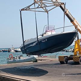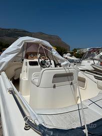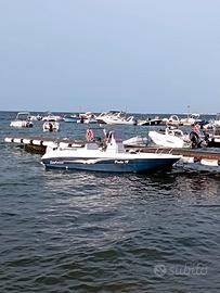Vendo barca open "Perla 18" blu e bianca, lunghezza 5.63 mt, con motore Evinrude E-TECH 90 cv., tagliandato lo scorso anno.