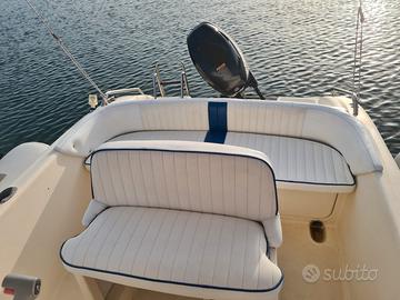 Barca open del cantiere del canale schizzo 565 con motore Suzuki 40 hp 4 tempi iniezione elettronica del 2011 con solo 100 ore di navigazione con elica in acciaio , con carrello omologato la barca si presenta in ottime condizioni dotata dí ecoscandaglio GPS lowrance impianto stereo audio, con casse marine, serbatoio doccetta acqua dolce ,2 serbatoi benzina da 30 litri , tappezzeria rifatta aprile 2024 luci di via Tendalino estraibile, ancora 6 kg con cima e catena, doppia batteria completo di stacca inverti batteria, impianto elettrico rifatto nel 2023 pompa di sentina, scaletta in acciaio, 2 porta canna laterali per traina + 4 porta canne centrali ,copri barca fatto nel 2023 su misura con telo tipo camion barca auto svuotante.