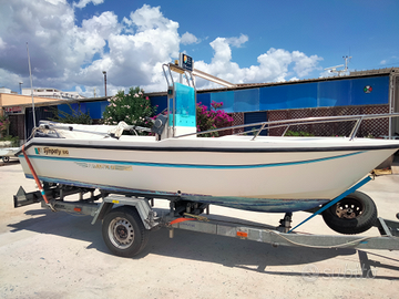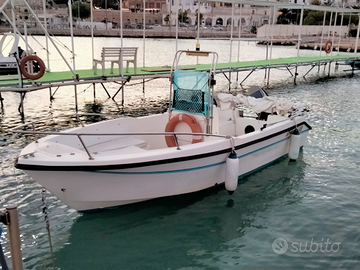 Barca open di 5,10 metri, pratica e versatile, ideale per uscite giornaliere con amici o famiglia. La carena, con prua rialzata, garantisce una buona tenuta in mare e mantiene l'interno asciutto anche con mare formato, rendendo la navigazione più confortevole.