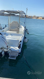 Barca trinacria 6 metri. Motore 140 Johnson 4 tempi anno 2006. Carrello non omologato . Doccetta. 2 sentine. 2 serbatoi carburante. Cuscineria completa. Tendalino. T top in acciaio. Porta cannone. 2 batterie. Tutto in perfette condizioni