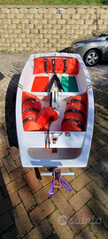 Barca oprimist faccenda unico prprietario immatricilata a luglio 2023 completa con 1 vela CD da regata ott 2023 n velico 9899 , 2 vele allenamento albero boma picco optimax mk4 carrello telo sopra sotto sacca timone e deriva , cima traino completa di tutto.