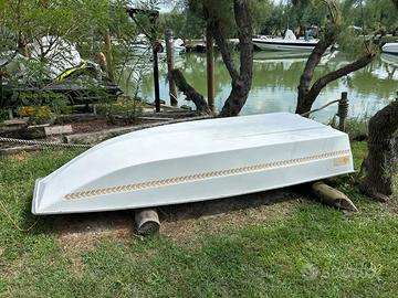 Vendo barca Patanella De Pieri & Mardegan, 3,2 metri con motore quattro tempi Yamaha 4 CV del 2002 entrambi in ottime condizioni. Barca pratica e comoda, sempre tenuta al secco senza antivegetativa con gel coat originale usata pochissimo. Barca robusta con buona stabilità considerate le dimensioni ma De Pieri & Mardegan le faceva a Mestre per i veneziani e doveva farle bene se voleva venderle.
