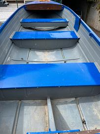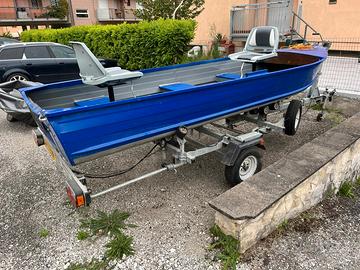 Vendo questa barca da 4.20 da pesca in alluminio con carrello e motore, non separo la barca dal motore.