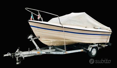 Barca Pilotina GOBBI "Pilot Cabin 499", in vetroresina bianca, con doppio scafo. Dotata di 2 serbatoi per il carburante, in metallo, rimovibili. 5 posti. Sedili reclinabili. Doppio tendalino. Cabina confortevole a 3 posti letto, tendine e scuri in tessuto, materassini originali blu, portina di ingresso con olblò, doppia apertura scorrevole ai lati e superiore, pagliolato centrale che diventa tavolo, portaoggetti a parete e due lungo i lati. 3 gavoni interni. Pagliolati esterni rivestiti con relativi gavoni. Pontatura a prua. Accessoriata di remi, parabordi, paraprua, cime, ancora, bitte di ormeggio, tappi di sicurezza, luci di via, tromba. Porta motore ausiliario a poppa. Carrello Ellebi LB in dotazione (da revisionare), con verricello e gruppo ottico targa funzionante, rifatto da poco.