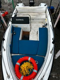 Vendo barca open 4,60 Mt con motore mercury super America 25 cv passato a 40 cv 2 tempi, tagliando fatto a giugno. Barca accessoriata con impianto elettrico nuovo fatto a giugno dispone di luci di posizione, luce centrale quadro elettrico con uscite di usb. Carrello non omologato in buone condizioni