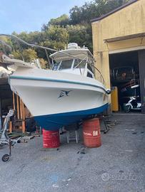 Vendo barca di 7,20 metri del cantiere Polyform modello Barracuda del 1998. La barca dispone di una cabina con due posti letto, accessoriata con navigatore GPS, ecoscandaglio, pompa di sentina automatica e manuale, due batterie, salpa ancora elettrico, portacanne,parabordi. Motore entrobordo VM da 250 cv ,revisionato tutti gli anni.