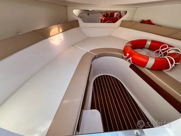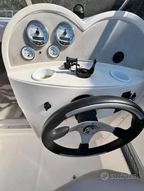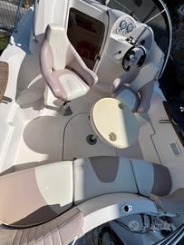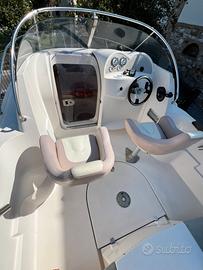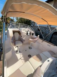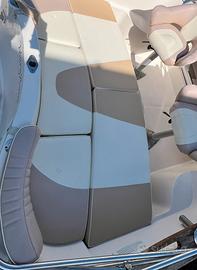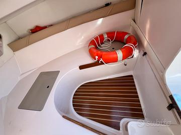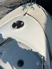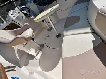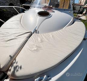 Completa di roll-bar in acciaio inox e tendalino nuovo di agosto 2024; Sempre di agosto 2024 la pompa di sentina; cuscini prendisole in prua di 7cm di altezza; dotata di water ecologico (nuovissimo, mai utilizzato) tavolino e prolunga prendisole in poppa e doccino con serbatoio per acqua dolce da 47 litri.