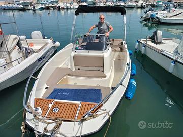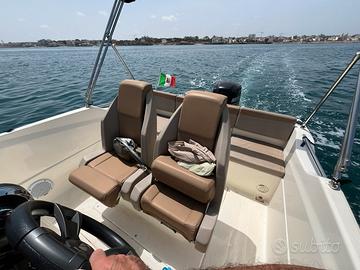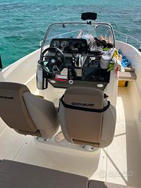 Come da titolo cedo quicksiver 555 open lft 580 grazie alle prolunghette montate a poppa già dalla casa costruttrice completa di tutto il necessario che serve per avvicinarsi alla nautica..lo scafo è comprato nuovo unico proprietario del 2021 mentre il motore da 100 cv è del 2019 comprato con 40 ore ora ne ha 103 tutto manutenuto da mercury service excellence.la barca ê completa di tendalino tavolino da montare a prua all’occorrenza doccetta con sebatoi da 40 lt serbatoio carburante da incasso 110 lt timoneria idraulica prolunghette prendisole e coperture per pilotina e sedili(qst girevoli a 360) dtereo fusion e illuminazione interna