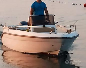 Barca Ranieri azzurra 5,20 metri con carrello artigianale non omologato (nuovo mai entrato in acqua non è quello che si vede in foto pagato 600 euro), cuscineria rifatta completamente, tendalino e tutte le dotazioni di bordo racchiuse nell'ampio gavone di prua. Doppia batteria (entrambe nuove 2025), stacca batteria, pompa di sentina automatica ed impianto elettrico interamente rifatto. Motore yamaha 30 cv 4t, datato ma affidabilissimo, consumi irrisori e ottime prestazioni, sempre rimessato a fine stagione, con serbatoio da 30 litri. Doccetta di acqua dolce, scaletta di risalita in acciaio, ancora con catena e cima. In omaggio due reggi canne in acciaio e piccolo eco scandaglio. Barca tenuta in buone condizioni pronta all'uso, ideale per pesca e famiglia. Prezzo poco trattabile.