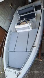Come da titolo vendo meravigliosa Ranieri Azzurra con motore 40 cv e carrello alaggio incluso (non omologato). Impianto elettrico nuovo Cavi variatore nuovi Radio con casse nuove Tendalino incluso Serbatoio benzina 30 lt La barca è tenuta in garage Ottima per gite in famiglia, o prima esperienza... Ottima stabilità in mare La vendo per passaggio a categoria superiore La barca è visibile dietro appuntamento