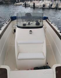 Vendo Barca Molinari 6.30, fuoritutto 7 metri. Molto spaziosa omologata per 8 persone. La barca monta un Mercury Efi 115 cv del 2011, con sole 230 ore di moto. Dotata di serbatoio benzina da 120 lt, tendalino in acciaio, salpa ancora elettrico, doccetta, Ecoscandaglio Lowrance Elite 7 ti 2 (praticamente mai usato), bussola, dotazioni di bordo, doppia batteria, cuscineria in buono stato. Disponibile per qualsiasi prova. Contattare per altre foto.