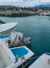 Vendo per passaggio a categoria superiore, barca renato Molinari Falcon 4.50 con motore Honda 40 CV anno 2006 a carburatori. Sulla barca sono stati eseguiti diversi lavori, tra cui la modifica della pilotina con la vasca del vivo integrata, modifica del gavone di poppa per il recupero dello spazio sulla poppa e istallazione estraibile del seggiolone per la guida. Inoltre, è dotata di: n 10 porta canne da riposo e n 3 porta canne da pesca regolabili, dotata di impianto elettrico e impianto luci notturne. La barca come si può vedere nelle foto ha sponde alte è un ottima navigabilità, velocità max 24 nodi. Cedo anche un carrello alaggio omologato provvisto di targa e libretto. La barca si trova nel porto di Amantea disponibile per qualsiasi prova in mare.