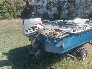Vendo barca rio 500 con motore Suzuki 30cv. Il motore ha pochissime ore ed ha fatto il tagliando completo. Inoltre a luglio è stato rifatto il pavimento in legno marino, impianto elettrico e anti vegetativo. La barca ha il tendalino, attacca e stacca batteria, pannello solare..... Carello solo alaggio con verricello elettrico. Trattabile.