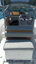 BARCA LUNGHEZZA 630 LARGHEZZA 243, WALKAROUND CON POZZETTO GRANDE, SUPER ACCESSORIATA: MOTORE YANMAR 200CV TURBO DIESEL 2009 ORE DI MOTO 532, MOTORE AUSILIARIO YAMAHA 9,9 CV 2T CON 2 TANICHE DA 12LT 2005, VELOCITA MASSIMA 26/27 NODI - VELOCITA DI CROCIERA 20/22 NODI ,FLAP IDRAULICI, SERBATOIO INOX CARBURANTE 120LT, ECOSCANDAGLIO KODEN CV106 COLOR, GPS MAGELLAN FX324 COLOR, VHF, AUTORADIO PIONEER CASSE BOSS, PANNELLO SOLARE CARICA BATTERIE, 2 BATTERIE 95 AMP 2024, 2 POMPE SENTINA CON GALLEGGIANTE ELETTRICO, 1 AUTOCLAVE CON PRESA DI MARE, DOCCETTA, VERRICELLO ELETTRICO SALPA ANCORA, 2 PRESE INCASSO 12V PER MULINELLO ELETTRICO O SALPA PALAMITO ELETTRICO,4 PORTACANNE, FRIGO INDEL CRUISE CR49 ANNO 2022, TAPEZZERIA CABINA ED ESTERNA COME NUOVA , CAPPOTTA CHIUSURA CABINA ESTERNA, ECCEZIONALE INVASATURA IN FERRO