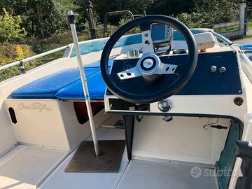 Barca in ottime condizioni con tendalino+ ecoscandaglio + telo copribarca completo, barca completamente auto svuotante. Motore Evinrude 737 tagliandato.