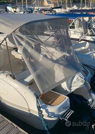 Semicabinato– Refitting Totale 2022 – Pronto alla Boa & Bassi Consumi Descrizione Generale Vendo splendida unità da diporto, ideale per crociere giornaliere o weekend in coppia. La barca è stata oggetto di un importante refitting nel 2022, che ne ha rinnovato estetica e funzionalità. Motorizzata con l'affidabile Yamaha 100cv 4 tempi, connubio perfetto tra prestazioni e consumi ridotti. Caratteristiche Principali & Comfort • Abitabilità: Cabina interna con cuscineria comoda per il pernottamento di 2 persone, dotata di tre gavoni e predisposizione per WC nautico. • Esterni: Plancette di poppa in teak e cuscineria completa rifatta a nuovo nel 2022. • Ombra e Protezione: Tendalino a tre archi in acciaio inox con estensioni laterali e di poppa (tutto 2022), oltre a telo invernale per copertura totale. Dotazioni e Impiantistica (Aggiornate 2022) • Elettronica: GPS cartografico a colori Garmin ed ecoscandaglio Garmin. • Energia: Sistema a doppia batteria Exide da 100Ah (nuove 2022) con staccabatterie 1-2-parallelo. • Intrattenimento: Impianto stereo Boss Marine con 4 altoparlanti. • Servizi: Verricello elettrico Lofrans 500W (ancora Bruce 5kg), autoclave con doccetta esterna, serbatoio acqua 40lt e benzina 130lt. Sicurezza e Accessori • Timoneria idraulica per una guida fluida. • Kit sicurezza completo: 4 salvagenti, ciambella e dotazioni di bordo. • scaletta telescopica in acciaio. Spedizione in tutta Italia Info 3489103717