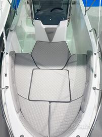 Grazie al passaggio laterale e alle sponde alte, offre un comfort superiore e una maggiore sicurezza a bordo. La prua è dotata di un ampio prendisole, che può essere facilmente trasformato in una zona conviviale aggiungendo l'asta di supporto per convertire uno dei pannelli in un grande tavolino.