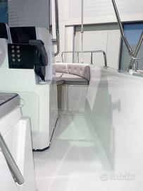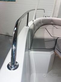 Grazie al passaggio laterale e alle sponde alte, offre un comfort superiore e una maggiore sicurezza a bordo. La prua è dotata di un ampio prendisole, che può essere facilmente trasformato in una zona conviviale aggiungendo l'asta di supporto per convertire uno dei pannelli in un grande tavolino.