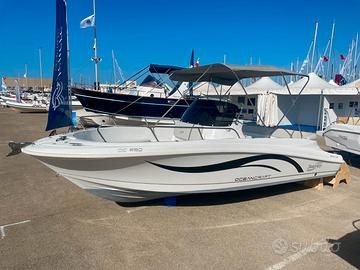 PREZZO INDICATIVO - CONTATTACI PER INFO L’Ocean Craft 650 Open si distingue per le sue linee moderne e grintose, abbinate a una carena progettata per offrire massima stabilità e sicurezza anche con mare formato. Davanti, un ampio prendisole trasformabile in tavolo grazie a un’asta in alluminio estraibile rende l’imbarcazione ideale per momenti conviviali con amici e famiglia. Completa l’allestimento una comoda cabina ripostiglio/wc, perfetta per stivare dotazioni di bordo o attrezzatura da pesca. La prua è predisposta per l’installazione di un verricello elettrico, mentre a poppa troviamo una dinette spaziosa e accogliente. Per una navigazione più fluida e precisa, si consiglia l’installazione della timoneria idraulica. Caratteristiche tecniche Categoria CE: C Lunghezza fuori tutto: 6,50 m Larghezza massima: 2,50 m Peso a vuoto: 850 kg Motorizzazione consigliata: da 115 a 200 HP Portata massima: 9 persone Allestimento di serie Cuscineria completa (interna ed esterna) Luci di navigazione a LED Pompa di sentina Asta 360° estraibile Portaoggetti interni ed esterni Scafo bianco Scaletta di risalita estraibile Corrimano inox completi Porta scorrevole in plexiglass Sedile con lavabo Acciaieria di prua 4 bitte inox Vetrino console Impianto elettrico completo Finanziamento su misura Possibilità di finanziamento agevolato da 12 a 84 mesi, studiato in base alle tue esigenze. Motorizzabile con 115, 150 o 200 HP, anche con finanziamento a tasso zero. Vieni a scoprirla nel nostro showroom e richiedi un preventivo dettagliato. Valutiamo il rientro della tua imbarcazione usata, anche dei marchi: Allegra, Eolo, Marinello, Brube, Laguna, Idea Marine, Quicksilver, Sessa, Ranieri, Salpa, Salmeri, Joker Boat, Jeanneau, Beneteau, Invictus, Honda, Mercury, Suzuki, e molti altri. Contatti Ufficio Vendite e Amministrazione: Showroom & Accessori – Sabrina: Assistenza WhatsApp: Salento Marine – Costruzione di Imbarcazioni Made in Salento