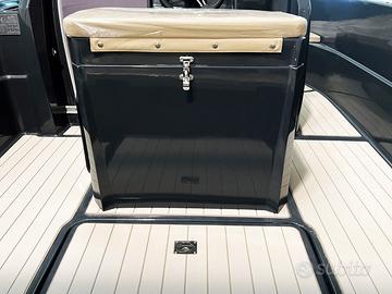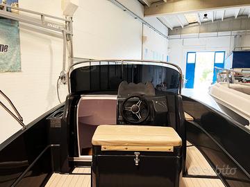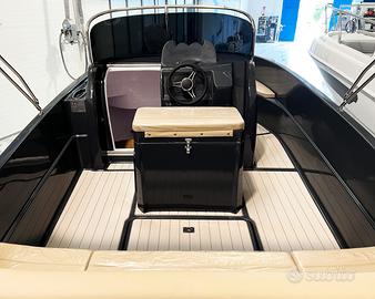 Davanti, un ampio prendisole trasformabile in tavolo grazie a un’asta in alluminio estraibile rende l’imbarcazione ideale per momenti conviviali con amici e famiglia. Completa l’allestimento una comoda cabina ripostiglio/wc, perfetta per stivare dotazioni di bordo o attrezzatura da pesca.