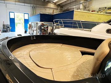 PREZZO INDICATIVO - CONTATTACI PER INFO L’Ocean Craft 650 Open si distingue per le sue linee moderne e grintose, abbinate a una carena progettata per offrire massima stabilità e sicurezza anche con mare formato. Davanti, un ampio prendisole trasformabile in tavolo grazie a un’asta in alluminio estraibile rende l’imbarcazione ideale per momenti conviviali con amici e famiglia. Completa l’allestimento una comoda cabina ripostiglio/wc, perfetta per stivare dotazioni di bordo o attrezzatura da pesca. La prua è predisposta per l’installazione di un verricello elettrico, mentre a poppa troviamo una dinette spaziosa e accogliente. Per una navigazione più fluida e precisa, si consiglia l’installazione della timoneria idraulica. Caratteristiche tecniche Categoria CE: C Lunghezza fuori tutto: 6,50 m Larghezza massima: 2,50 m Peso a vuoto: 850 kg Motorizzazione consigliata: da 115 a 200 HP Portata massima: 9 persone Allestimento di serie Cuscineria completa (interna ed esterna) Luci di navigazione a LED Pompa di sentina Asta 360° estraibile Portaoggetti interni ed esterni Scafo bianco Scaletta di risalita estraibile Corrimano inox completi Porta scorrevole in plexiglass Sedile con lavabo Acciaieria di prua 4 bitte inox Vetrino console Impianto elettrico completo Finanziamento su misura Possibilità di finanziamento agevolato da 12 a 84 mesi, studiato in base alle tue esigenze. Motorizzabile con 115, 150 o 200 HP, anche con finanziamento a tasso zero. Vieni a scoprirla nel nostro showroom e richiedi un preventivo dettagliato. Valutiamo il rientro della tua imbarcazione usata, anche dei marchi: Allegra, Eolo, Marinello, Brube, Laguna, Idea Marine, Quicksilver, Sessa, Ranieri, Salpa, Salmeri, Joker Boat, Jeanneau, Beneteau, Invictus, Honda, Mercury, Suzuki, e molti altri. Contatti Ufficio Vendite e Amministrazione: Showroom & Accessori – Sabrina: Assistenza WhatsApp: Salento Marine – Costruzione di Imbarcazioni Made in Salento