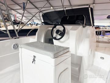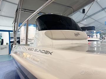 PREZZO INDICATIVO - CONTATTACI PER INFO Eleganza, comfort e prestazioni in un’unica imbarcazione L’Ocean Craft Sundek 650 è la scelta ideale per chi cerca una barca dalle linee accattivanti, sicura e confortevole anche in condizioni di mare formato, grazie a una carena robusta e affidabile. L’imbarcazione dispone di una cabina con 2 posti letto, spaziosa e versatile, con la possibilità di installare un WC chimico. La seduta guida con lavabo è inclusa di serie, mentre il prendisole di prua, ampio e accogliente, offre il massimo del relax. È inoltre predisposta per l’installazione di un verricello elettrico, e si consiglia la timoneria idraulica per una guida più fluida e precisa. Caratteristiche tecniche Categoria CE: C Lunghezza fuori tutto: 6,50 m Larghezza massima: 2,50 m Peso a vuoto: 950 kg Motorizzazione consigliata: da 115 a 200 HP Portata massima: 9 persone Allestimento di serie Cuscineria completa (interna ed esterna) Luci di navigazione a LED Pompa di sentina Asta 360° estraibile Portaoggetti interni ed esterni Scafo bianco Scaletta di risalita estraibile Corrimano inox completi Porta scorrevole in plexiglass Sedile con lavabo Acciaieria di prua 4 bitte inox Vetrino console Impianto elettrico completo Finanziamento personalizzato Possibilità di finanziamento a tasso agevolato da 12 a 84 mesi, pensato su misura per te. Motorizzabile 115, 150 o 200 HP, anche con finanziamento a tasso zero. Scoprila dal vivo nel nostro showroom e richiedi un preventivo dettagliato. Valutiamo il rientro della tua imbarcazione usata, anche dei seguenti marchi: Marinello, Sessa, Aquabat, Aquamar, Bluline, Brube, Quicksilver, Bellingardo, Ranieri, Italmar, Asmarine, Salmeri, Trimarchi, Allegra, Idea Marine, Eolo e molti altri. Contattaci per info e per avere un preventivo personalizzato!