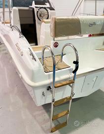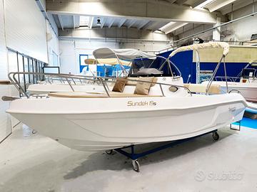PREZZO INDICATIVO - CONTATTACI PER INFO Sundek 19S è un'imbarcazione che unisce eleganza, sportività e affidabilità, grazie alle carene firmate Salento Marine. Il nuovo restyling presenta linee moderne e una carena rinforzata per garantire comfort e prestazioni in navigazione. Versatile e funzionale, è ideale per uscite in mare, sport acquatici, pesca e relax, con spazio per fino a 7 persone. Offre una cabina spaziosa, ampio pozzetto e può essere motorizzato anche con un motore da 40cv, combinando stile e praticità per vivere il mare in modo unico. Possibilità di plancette di poppa (Optional) Possibilità di estensione del prendisole (Optional) Specifiche tecniche: Categoria CE: C Lunghezza fuori tutto: 5,80 m Larghezza massima: 2,20 m Peso a vuoto: 750 kg Motorizzazione consigliata: 40 hp / 120 hp Portata massima persone: 7 Allestimento di serie: Scafo bianco Cuscineria completa Pompa sentina Luci di navigazione a LED Asta 360° Scaletta con gradini in teak Tientibene in acciaio Porta oggetti Posti letto: 2 Infoline: Ufficio Vendite e Amministrazione: Showroom & Accessori - Sabrina: Assistenza Whatsapp: Visita il nostro sito per scoprire tutti gli optional e gli allestimenti disponibili. Vieni a trovarci in sede per un preventivo dettagliato! Valutiamo il rientro di imbarcazioni usate, tra cui modelli tipo open e cabin di cantieri come: Allegra, Eolo, Marinello, Brube, Laguna Seca Marine, Site, Bellingardo, Idea Marine, Quicksilver, Sessa, Ranieri, Soverato, Honda, Voyager 19 Open Cabin, Mercury, Selva, Suzuki, Trimarchi, Orizzonti, AS Marine, Joker, Salpa Open Cabin, Salmeri Q20, Manara, Aquabat, Bluline, Aquamar, Next, Jeanneau, Beneteau, Marvel, Satellite, Invictus, Zodiac. Scegli il Sundek 19S per vivere il mare in tutta la sua bellezza, con la sicurezza e l'affidabilità che solo Salento Marine sa garantire!