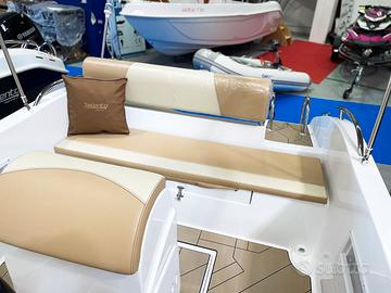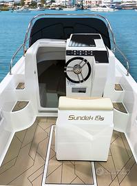PREZZO INDICATIVO - CONTATTACI PER INFO Sundek 19S è un'imbarcazione che unisce eleganza, sportività e affidabilità, grazie alle carene firmate Salento Marine. Il nuovo restyling presenta linee moderne e una carena rinforzata per garantire comfort e prestazioni in navigazione. Versatile e funzionale, è ideale per uscite in mare, sport acquatici, pesca e relax, con spazio per fino a 7 persone. Offre una cabina spaziosa, ampio pozzetto e può essere motorizzato anche con un motore da 40cv, combinando stile e praticità per vivere il mare in modo unico. Possibilità di plancette di poppa (Optional) Possibilità di estensione del prendisole (Optional) Specifiche tecniche: Categoria CE: C Lunghezza fuori tutto: 5,80 m Larghezza massima: 2,20 m Peso a vuoto: 750 kg Motorizzazione consigliata: 40 hp / 120 hp Portata massima persone: 7 Allestimento di serie: Scafo bianco Cuscineria completa Pompa sentina Luci di navigazione a LED Asta 360° Scaletta con gradini in teak Tientibene in acciaio Porta oggetti Posti letto: 2 Infoline: Ufficio Vendite e Amministrazione: Showroom & Accessori - Sabrina: Assistenza Whatsapp: Visita il nostro sito per scoprire tutti gli optional e gli allestimenti disponibili. Vieni a trovarci in sede per un preventivo dettagliato! Valutiamo il rientro di imbarcazioni usate, tra cui modelli tipo open e cabin di cantieri come: Allegra, Eolo, Marinello, Brube, Laguna Seca Marine, Site, Bellingardo, Idea Marine, Quicksilver, Sessa, Ranieri, Soverato, Honda, Voyager 19 Open Cabin, Mercury, Selva, Suzuki, Trimarchi, Orizzonti, AS Marine, Joker, Salpa Open Cabin, Salmeri Q20, Manara, Aquabat, Bluline, Aquamar, Next, Jeanneau, Beneteau, Marvel, Satellite, Invictus, Zodiac. Scegli il Sundek 19S per vivere il mare in tutta la sua bellezza, con la sicurezza e l'affidabilità che solo Salento Marine sa garantire!