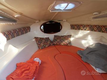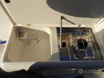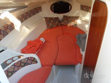 In dotazione ci sono impianto stereo, GPS Garmin con ecoscandaglio, impianto doccia, impianto carica batterie da banchina, chiusura pozzetto con tenda camper, salpa ancore elettrico, doppia batteria, frigorifero, wc elettricocon bagno separato, 4 posti letto , tendalino parasole, fornello a gas, lavello in pozzetto. Motore e barca in perfette condizioni