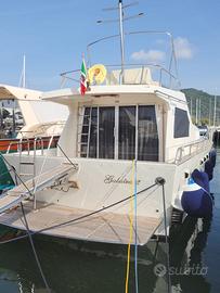 Vendita San Lorenzo 13,80 completamente ristrutturata. Tutto nuovo. C'è anche una cabina marinaio con accesso separato, sempre completamente ristrutturata con letto,lavabo e wc.nuovi. Inoltre ci sono cuscineria e tendalini parasole nuovi nel pozzetto, a prua e sul fly. Motori nuovi con 200 ore di moto. Due Caterpillar 480 turbo diesel.Impianto Fusion con casse anche sul fly etc.etc.