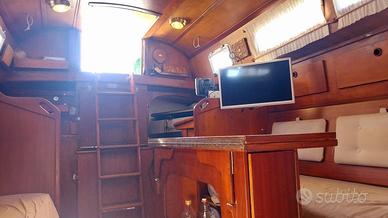 ALTRE FOTO SU RICHIESTA TRAMITE WHATSAPP Scheda tecnica Mania 35 Nome: CASSIOPEA Cantiere: Nord Cantieri Avigliana (TO) Progetto: Sangermani Anno costruzione: 1974 Bandiera: ITALIANA senza limiti dalla costa l.f.t.: 10,52 Baglio max: 3,08 Pescaggio: 1,80 Dislocamento: 4.500 KG CIRCA Motore: VETUS HP 25 con 460 ore di moto installato su silent block idraulici, serbatoio acciaio inox 100 l. Elica: MAX PROP 2 pale + 1 a 3 pale fisse Sartiame: acciaio 304 buono stato. Attrezzatura: rollafiocco Harken, vang rigido, 5 winch 2 self tailig, tangone. Timone a barra con barra di rispetto. Vele: 1 randa semisteccata 2 stagioni di vita con lazy bag + altra randa, genoa rollabile pesante buono stato e leggero idem, secondo strallo amovibile per ingarrocciare drifter, fiocco 1 - 2 - 3 e tormentina vecchi ma buoni, 1 spinnaker vecchissimo, Paranco randa e paranco vang Lewmar nuovi (2017). Interni: rivestiti in teak, 5 cuccette cuscineria nuova (2015), boiler 220v. + motore, impianto idraulico nuovo (2017) dai miscelatori, ai serbatoi (100 + 100 litri) ai tubi compresa autoclave (2017), fornello con 2 fuochi ad alcool. Dotazioni: VHF, gps palmare, dotazioni, pompa di sentina elettrica nuova (2017) + pompa manuale, salpa ancora con ancora Delta 10 kg e 300 m. misto tessile/catena calibrata dell'8 + altri 25 mt. circa catena calibrata 8mm. Lavori: riverniciata con AWL GRIP (2014). Anni fa dal precedente armatore è stato fatto ciclo epossidico anti osmosi su opera viva solo per precauzione, non ha e non ha mai dato segni di osmosi. Nel 2017 tolta tutta antivegetativa, due mani di primer epossidico e stesura nuova antivegetativa. Nel 2018 nuova antivegetativa. Luglio 2019 nuova antivegetativa e sostituzione boccola asse elica. Sempre pulita ogni anno. Altro: bimini "home made". Certificazione Rina da rinnovare.