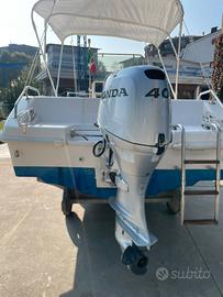 Vendo Barca Saver 495 Open in ottime condizioni come da foto; scafo anno 2003; motore Honda 40 CV, anno 2017, poche ore di navigazione, usata solo al lago. 5 posti. Cuscineria in perfette condizioni. Completa di tendalino, scaletta. Visibile sul Lago Maggiore