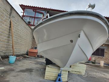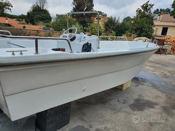 Barca Saver 5 metri con con sonsole centrale mercury Orion 40 - 60 HP del 2019, 300 h circa, smartcraft, contagiri, trim elettrico , doppio serbatoio 30 e 25 L con scambiatore di serbatoio, doppia batteria, stacca batterie, pannello solare di ricarica per due batterie, segnalatore sonoro, luci di via, pompa di sentina, nr 4 bitte di alaggio, nr.3 golfari, tendalino, alloggiamento per motore ausiliare. Ampio gavone di prua e di poppa murate alte. Ecoscandaglio fishfinder GARMIN 4 PLUS CV trasduttore dualband. Tenuta in secca a Nettuno. Vendo per passaggio di categoria.