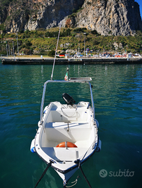 Barca Scafo Tre Fasce in Vetroresina mt 4,50 fuoribordo Suzuki 15Cv 4 tempi gambo lungo, raddrizzatore di corrente, blocco antifurto, serbatoio originale da 12lt con filtro decantatore e cartuccia intercambiabile, tutti gli accessori sono in acciaio 316, pompa di sentina automatica e manuale, scaletta, ecoscandaglio, gps con scheda cartografica, radio CB, pannello solare con ripartitore di carica batteria da 100Ah, rollbar con luci di via, quadro con impianto elettrico, varie prese di corrente 12v, tutto acciaio 316.